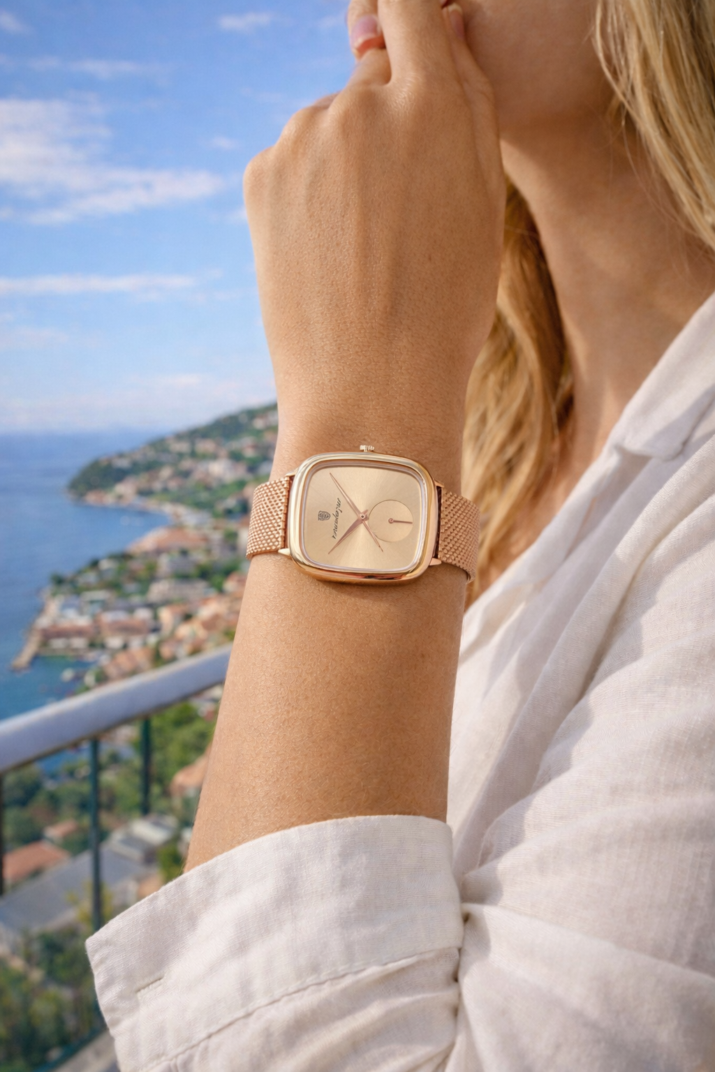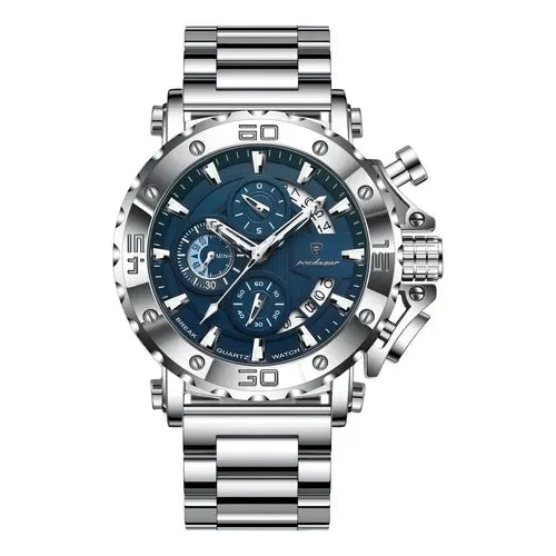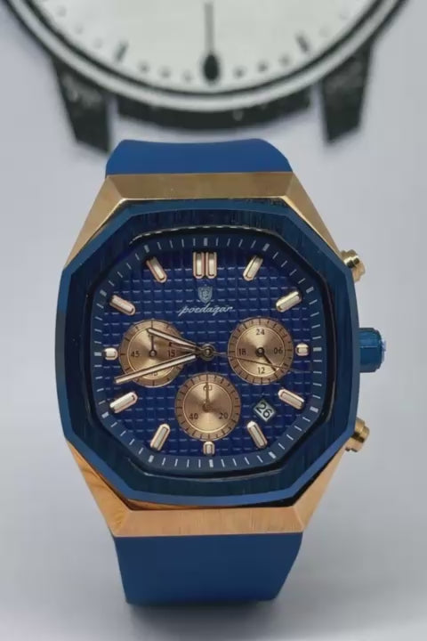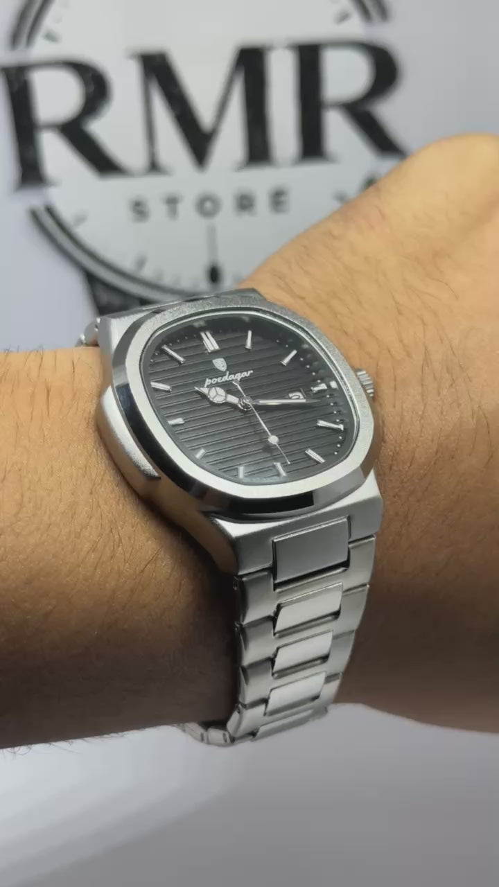 Elegância que chama atenção em qualquer ocasião. O RMR HORIZONT - Poedagar combina acabamento premium em aço com detalhes dourados e mostrador azul sofisticado. Um dos modelos mais desejados da coleção, perfeito para quem quer presença e estilo no pulso.